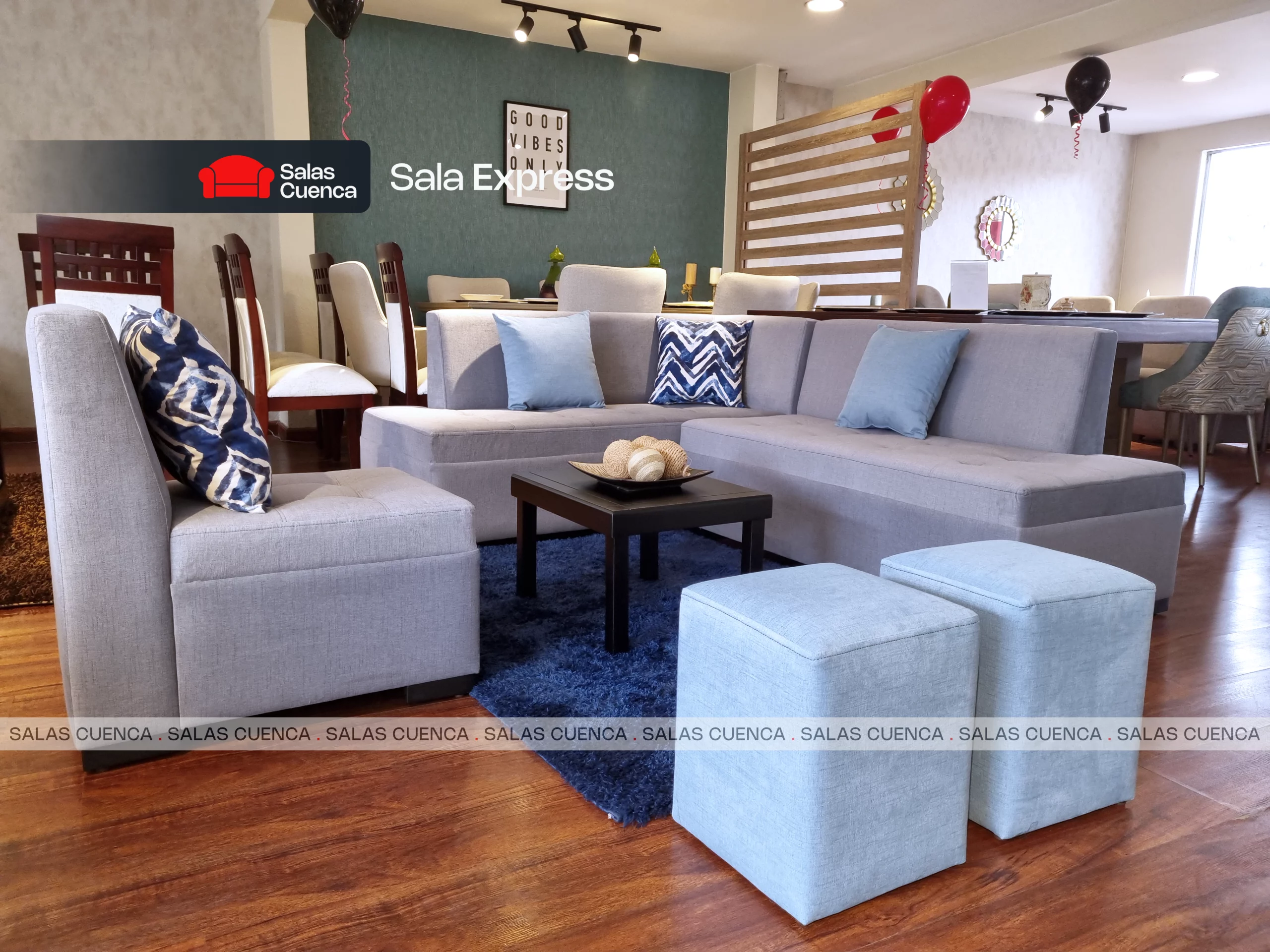 Sumérgete en el confort y estilo de la Sala Express, la solución ideal para espacios compactos de hasta 2.20m x 2.70m, fabricado en tapiz microfibra e ideal para 6 personas.