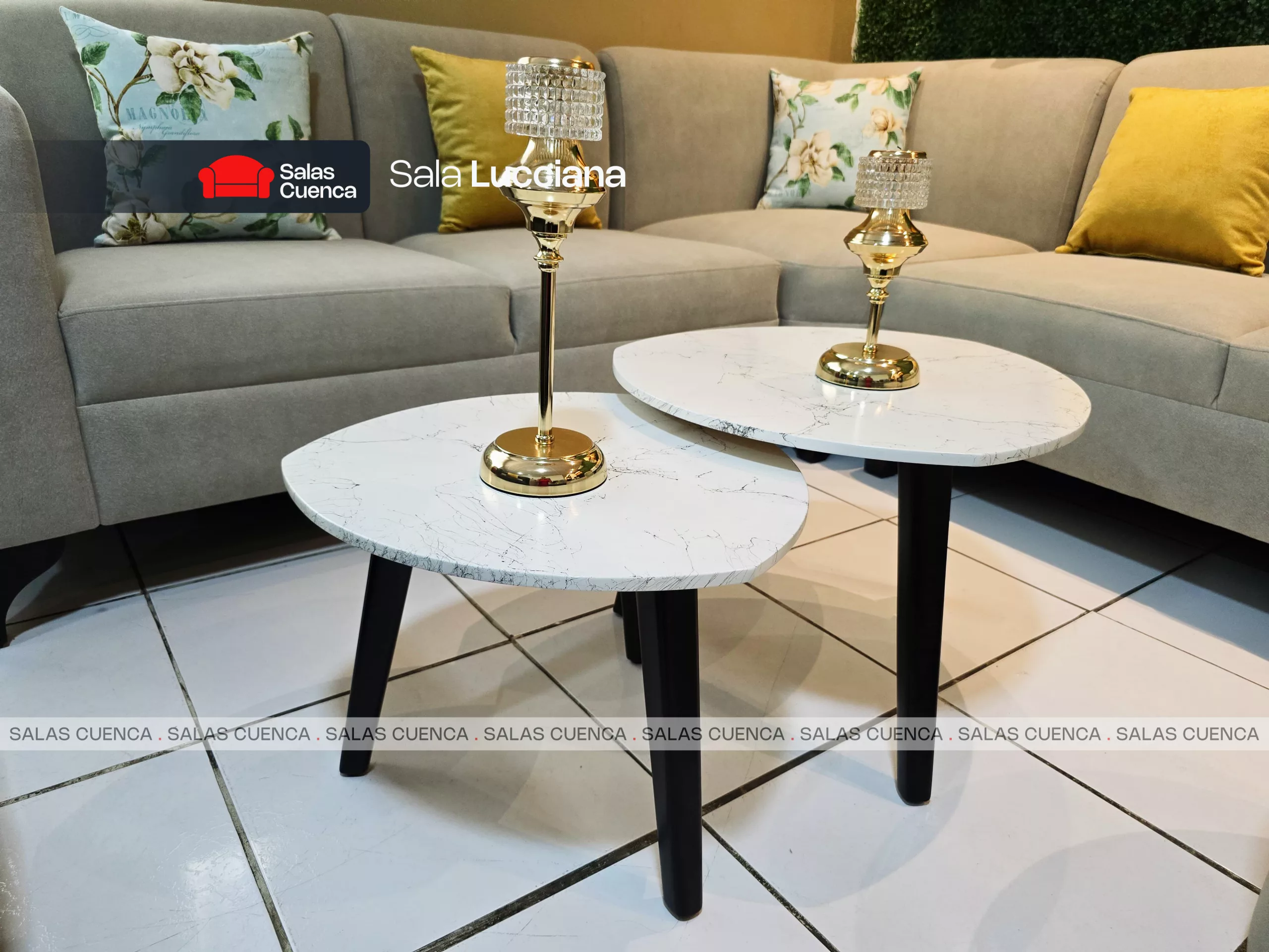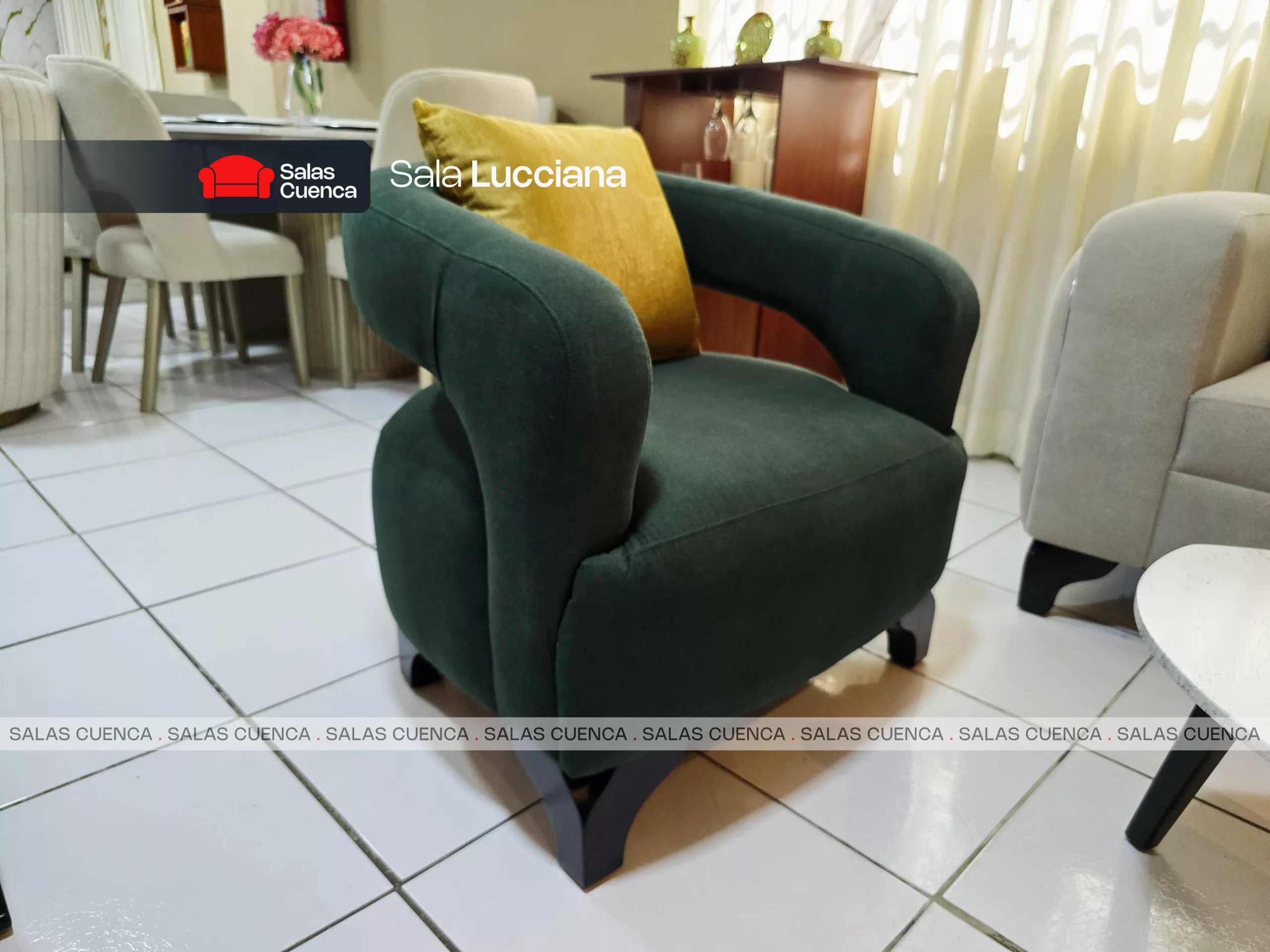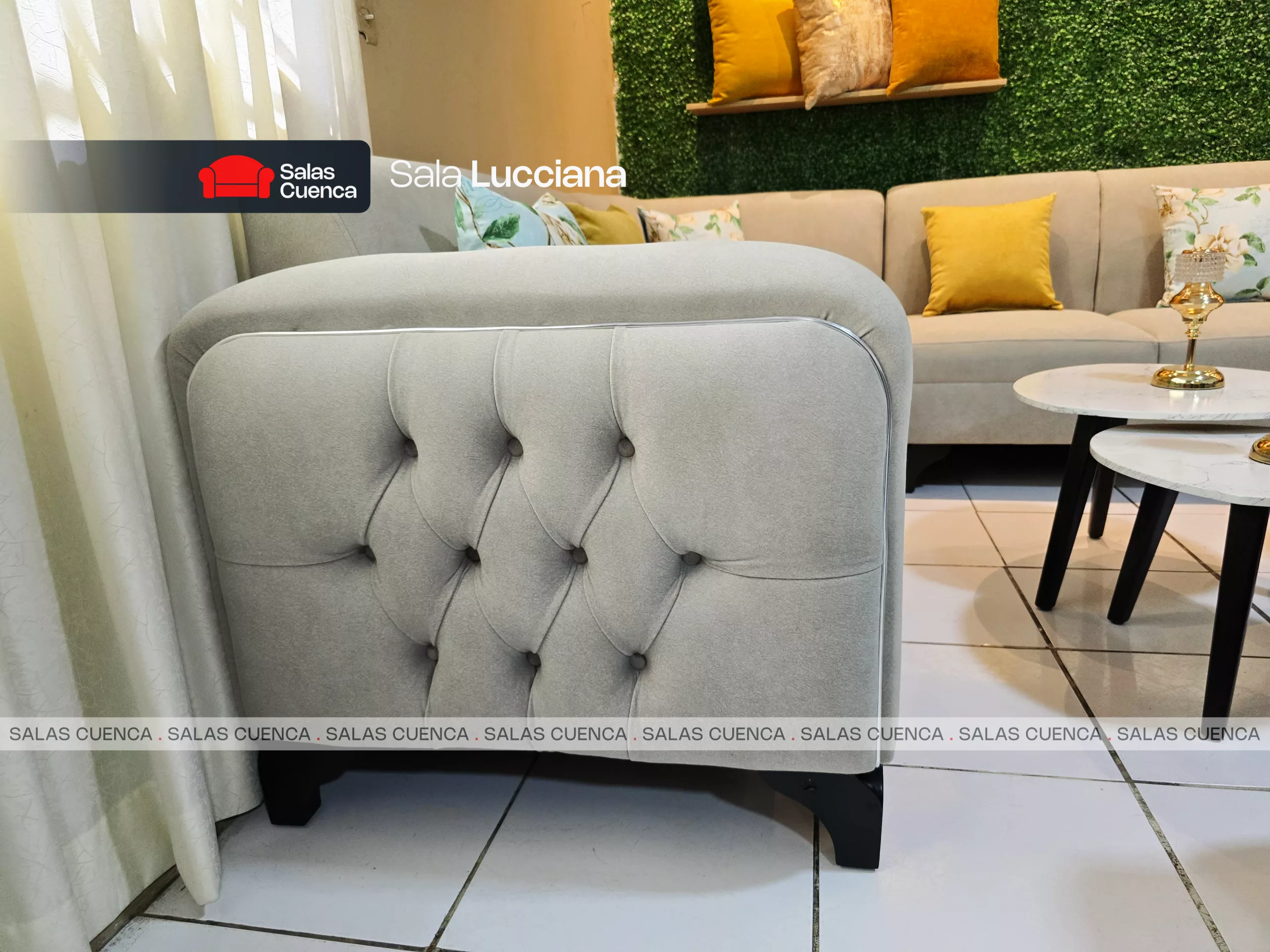 El juego de Sala Lucciana tiene un diseño único y un diseño único, viene con un puf y poltrona para formar un ambiente más acogedor. Un mueble ideal para 7 personas.