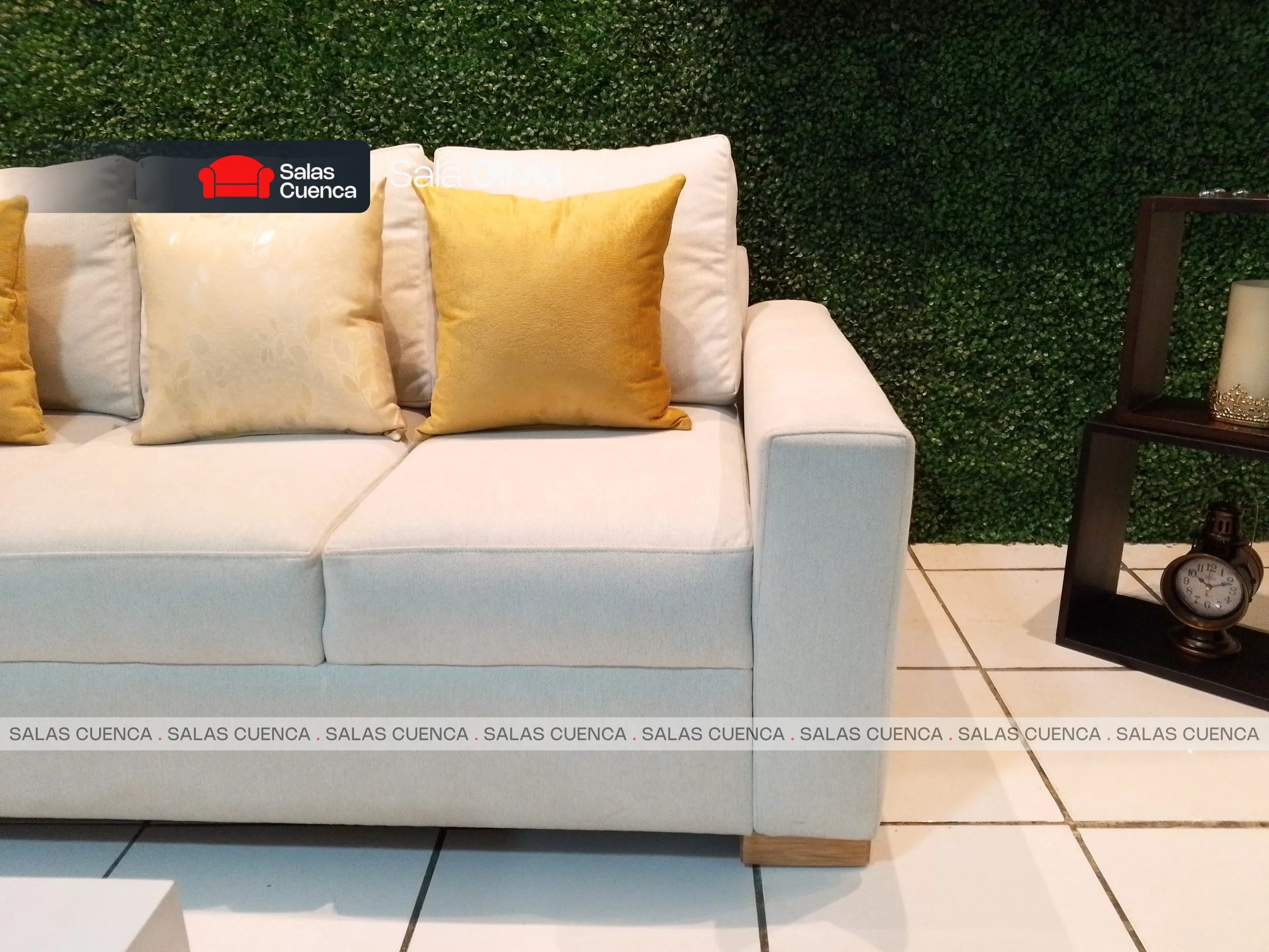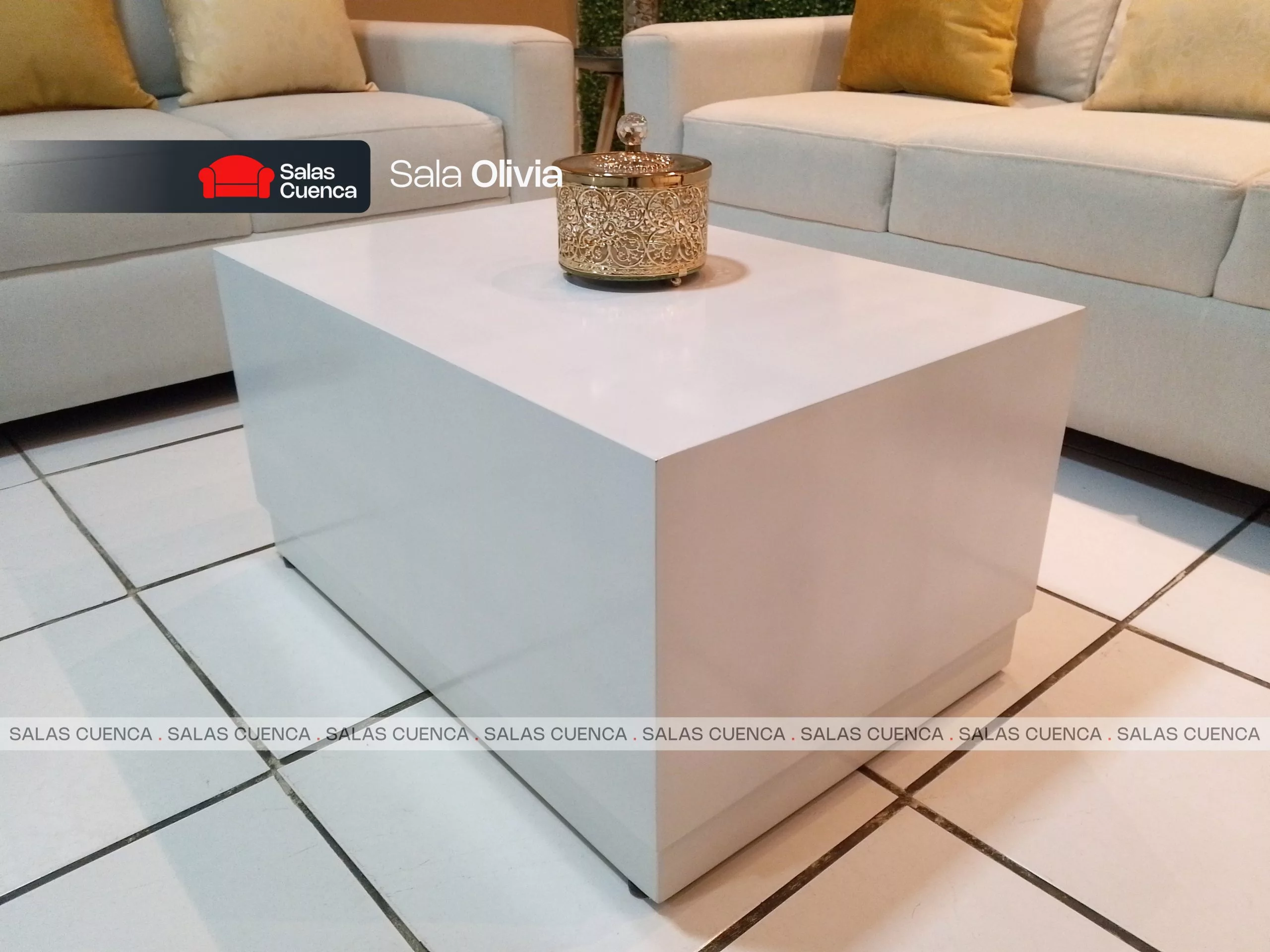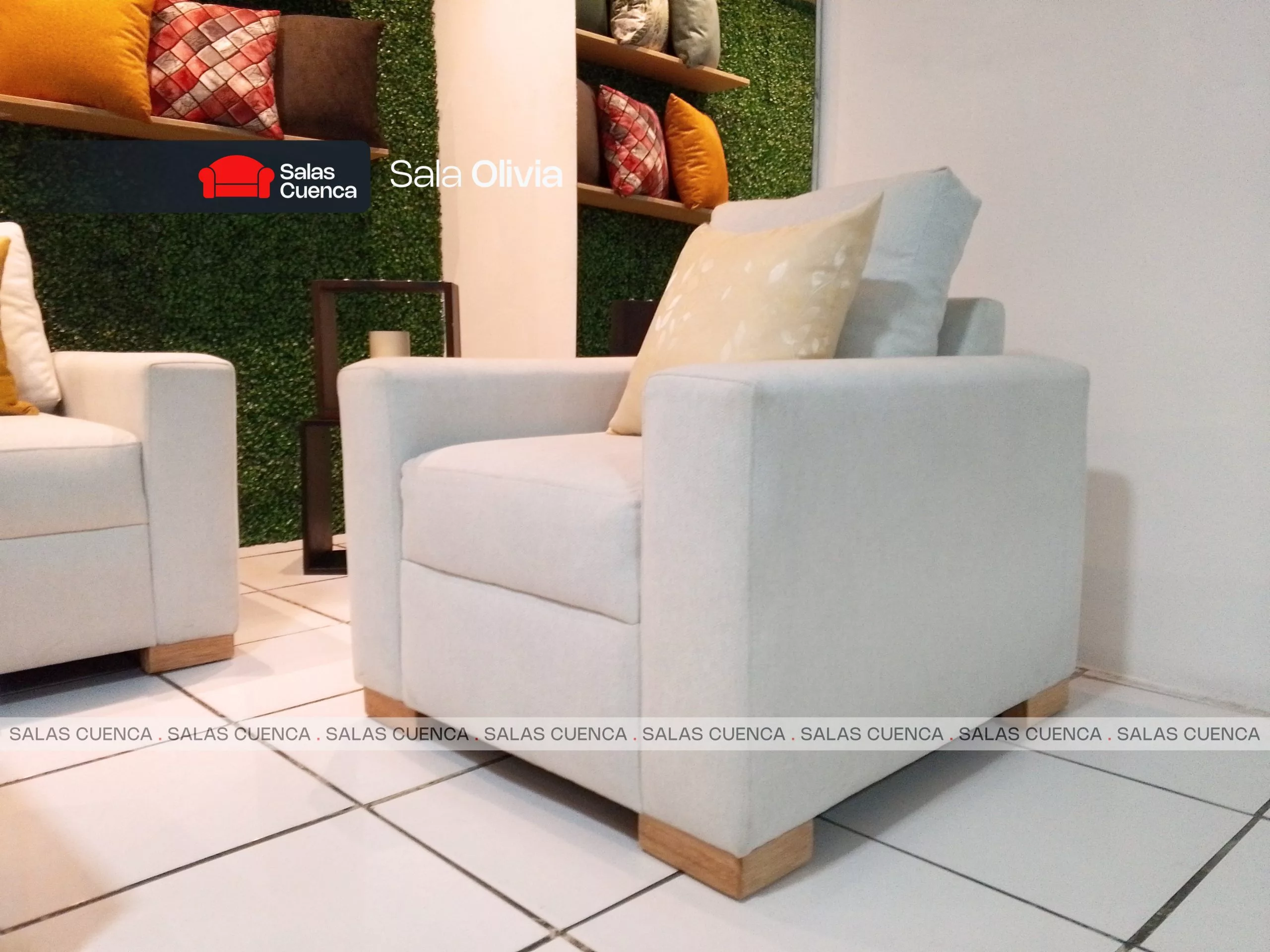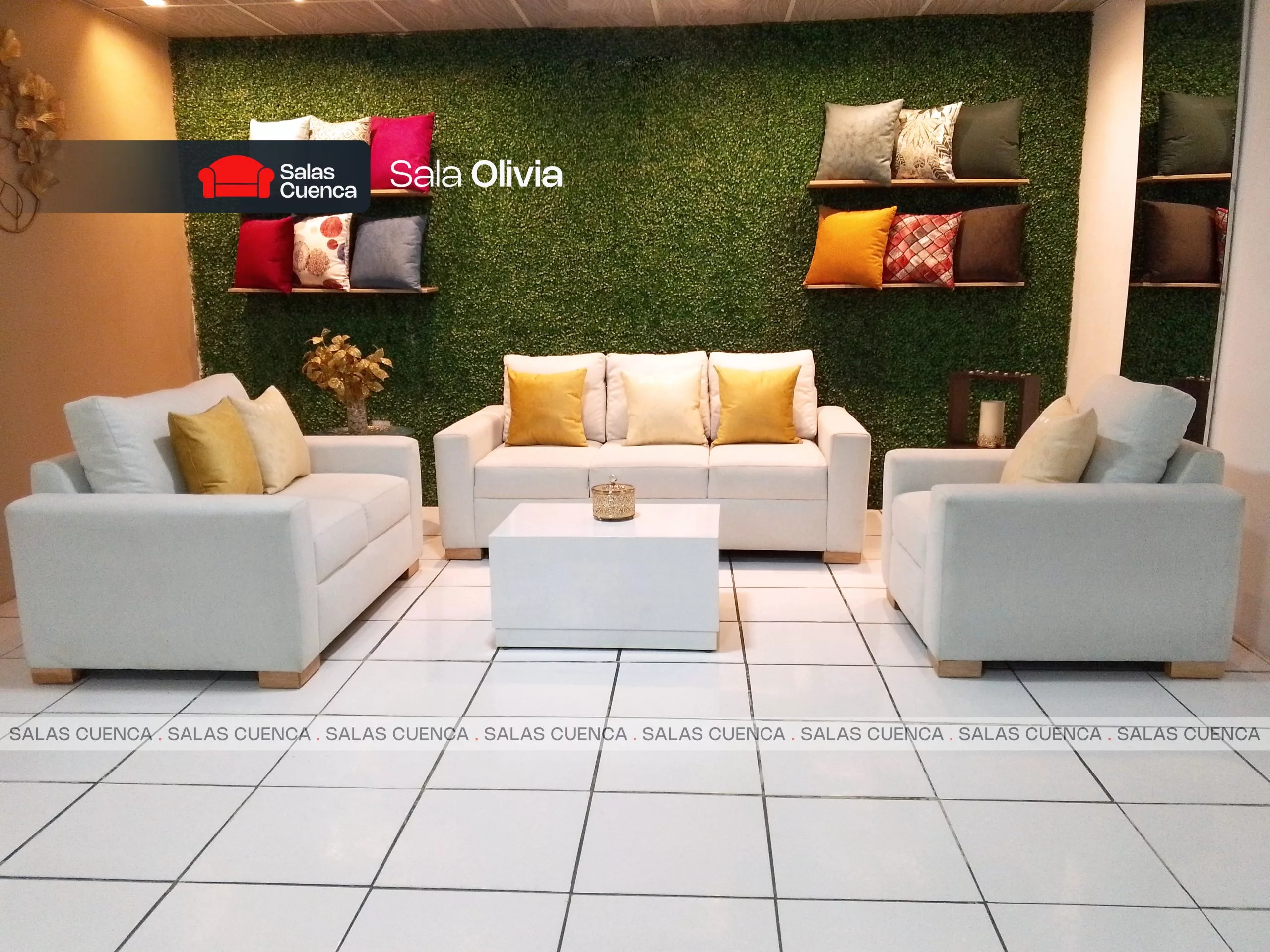 La Sala Olivia consta de un mueble triple, mueble doble, un elegante individual y 1 mesa de centro simple.